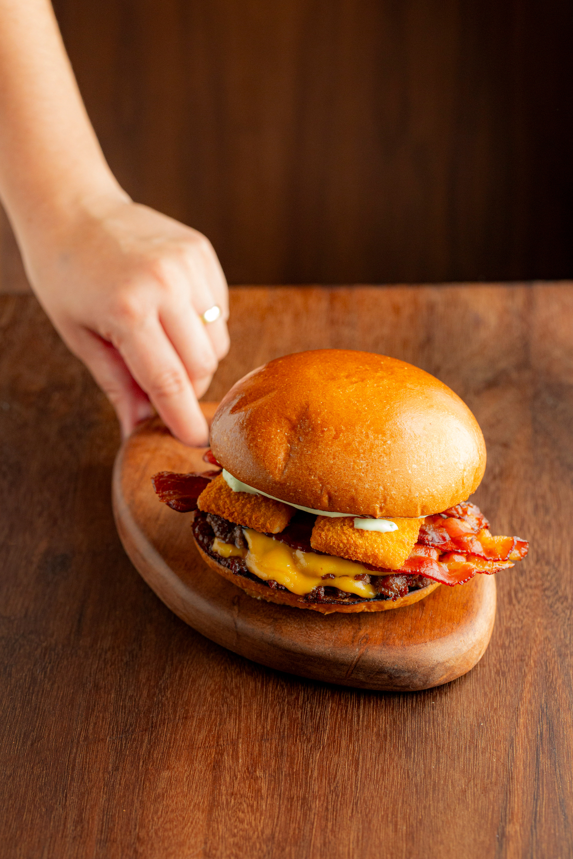 Produção de cena e fotografia de menu completo para hamburgueria